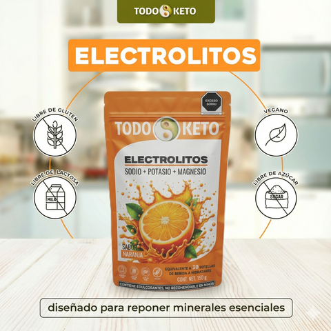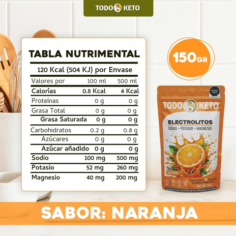 Electrolitos en Polvo Todo Keto - Sabor Naranja | Hidratación Sin Azúcar (150g)